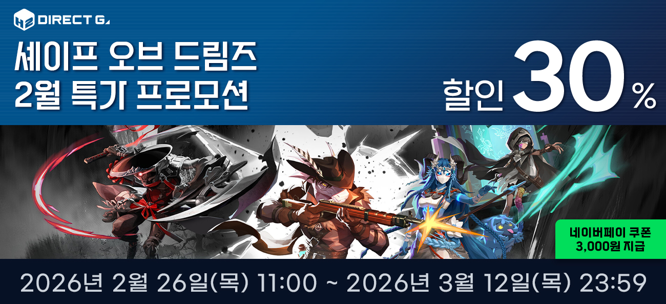 • 내용: 다이렉트 게임즈 인기 타이틀 <셰이프 오브 드림즈> 등 할인 판매
