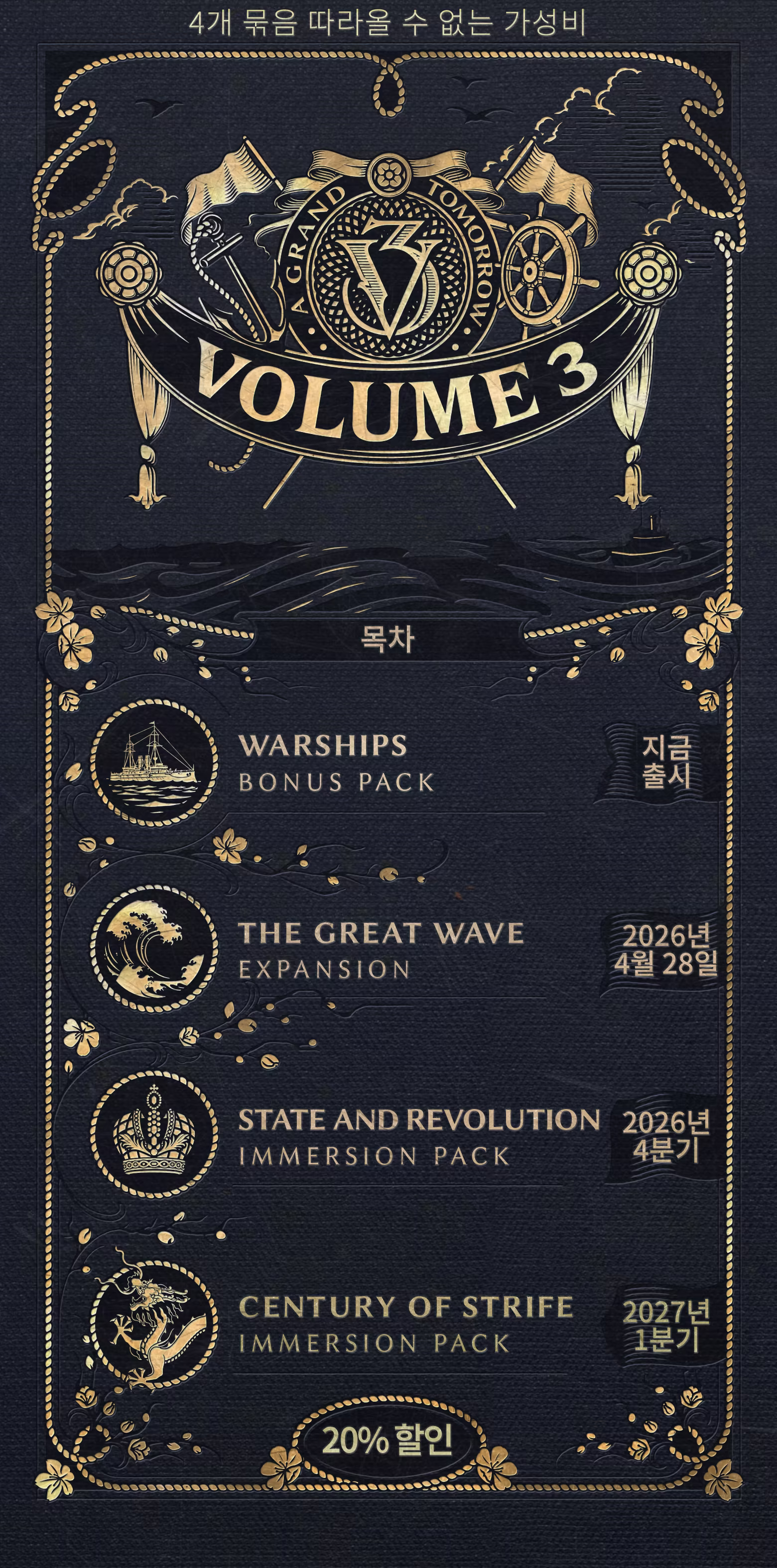 야망과 격변의 시대에 파도를 지배하세요. 강력한 전함을 설계하고, 전 세계 해협을 수호하고, 포함 외교를 통해 약소국을 굴복시킬 시간입니다.