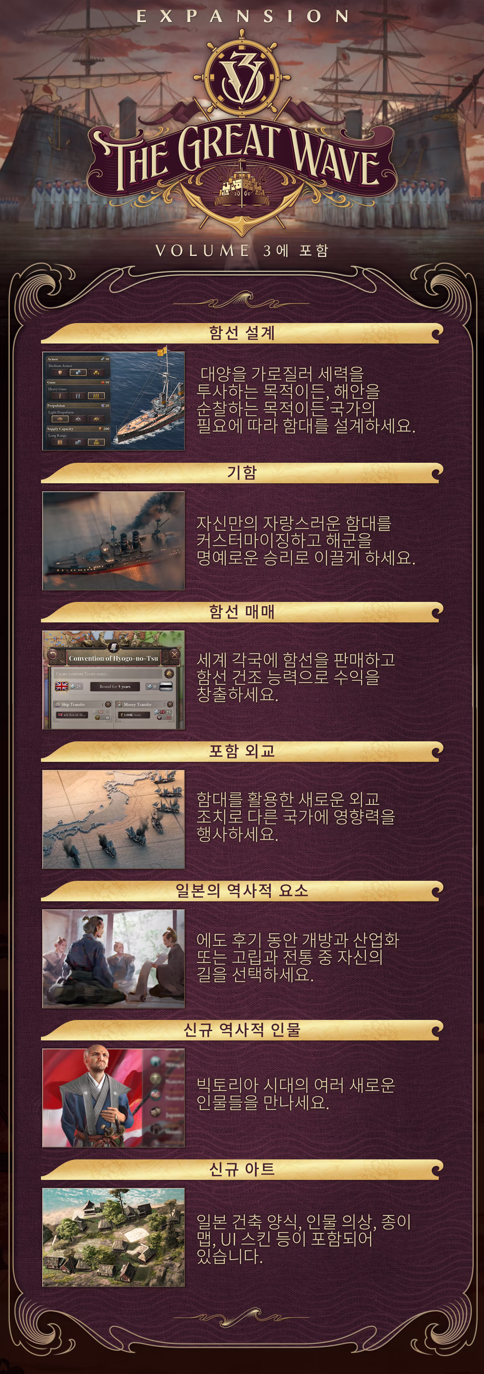Victoria 3: The Great Wave에는 다음과 같은 신규 콘텐츠가 포함됩니다.