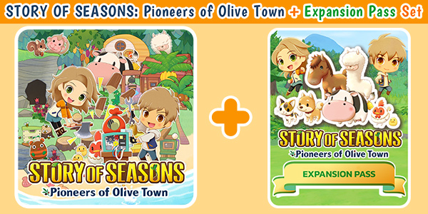 『목장이야기 올리브 타운과 희망의 대지: 익스팬션 패스』에는 주인공과 연애 후보들의 '새로운 의상'과 게임 본편과는 다른 스토리를 즐길 수 있는 '미니 시나리오', 그리고 '목장이야기'시리즈 25주년을 기념하여 과거의 3작품을 소재로 연애 후보와 주민이 추가되는 '연애 후보 팩' 이 포함됩니다.