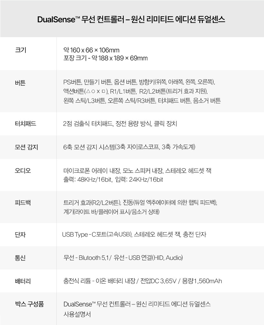 - 품명 PS5 듀얼센스 무선 컨트롤러